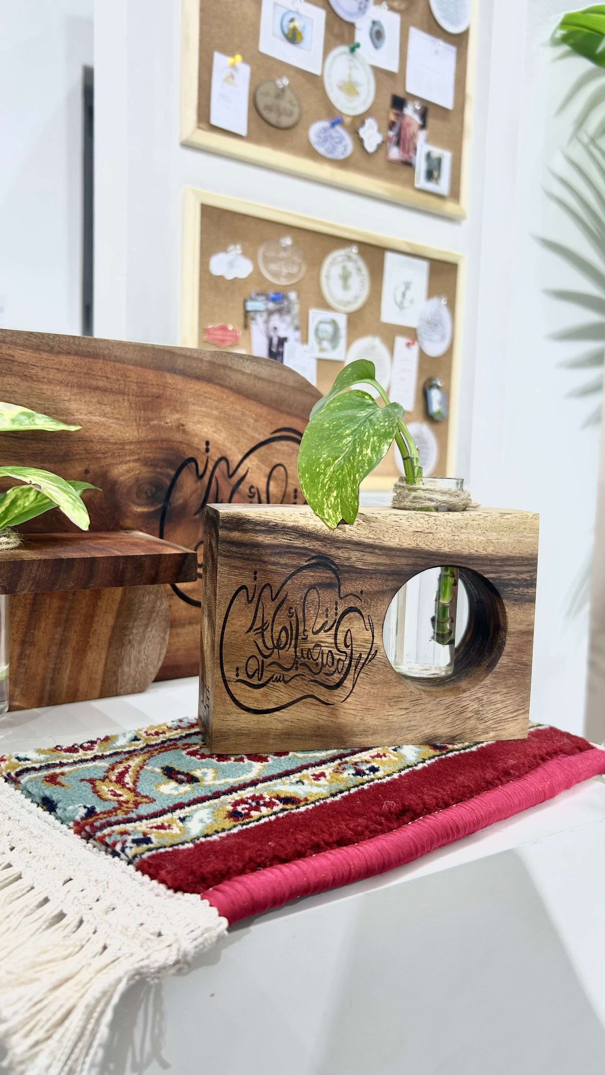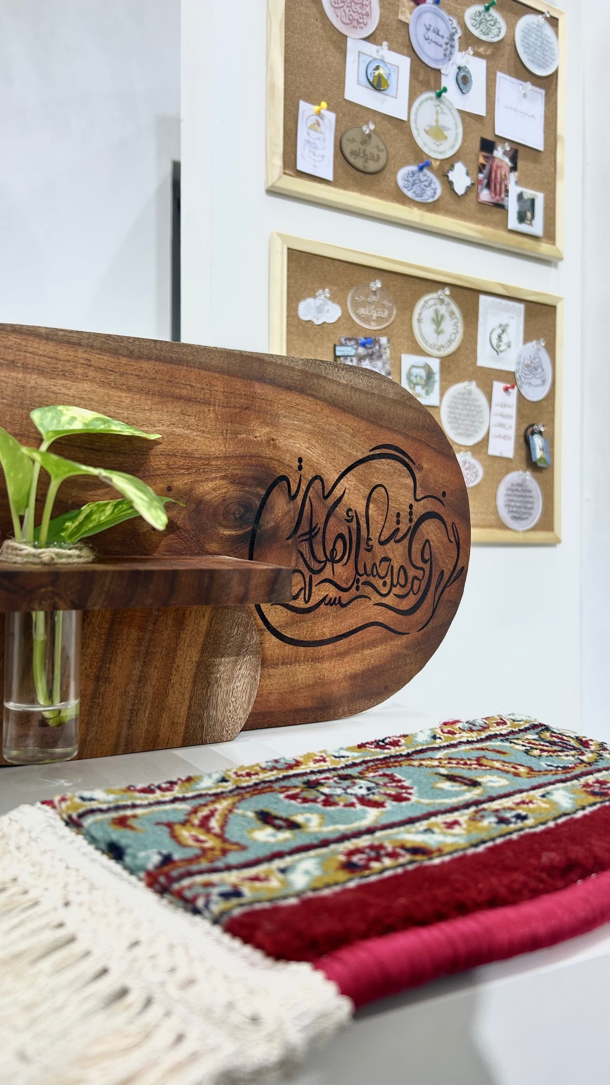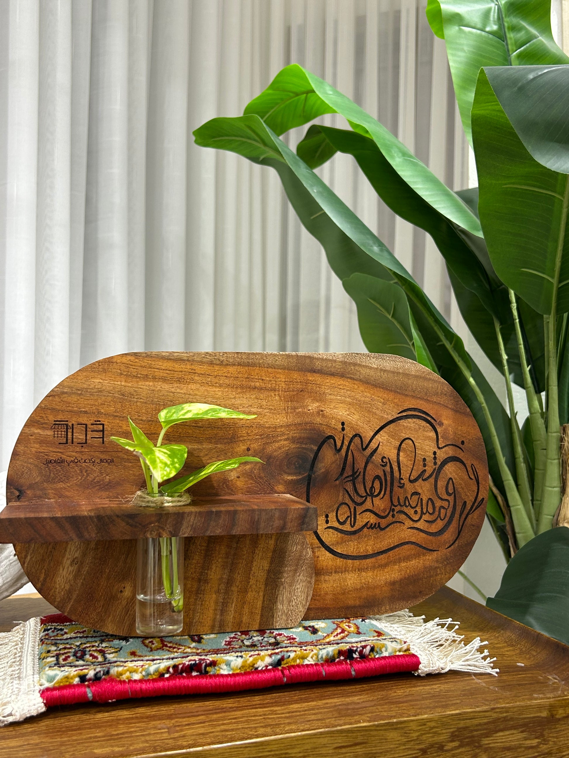 قِطع خشبيّة بِعبارة: وَكَمْ مِنْ ثَناءٍ جَمِيلٍ لَسْتُ أَهْلاً لَهُ نَشَرْتَهُ🌱